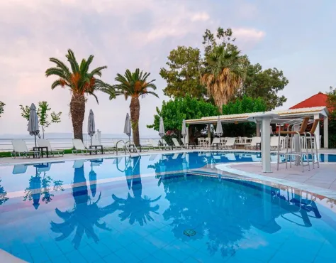 Plažni hotel se nalazi na južnom delu ostrva Krf, i slikovitom istorijskom gradu Krfu.