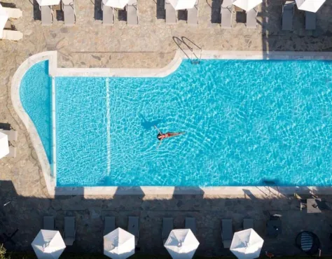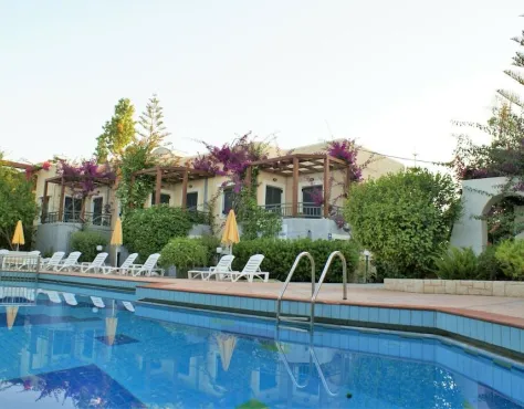 Laying amidst lush olive trees, the hotel is located next to the long, sandy beach of Kavos, in the southern part of Corfu Island.