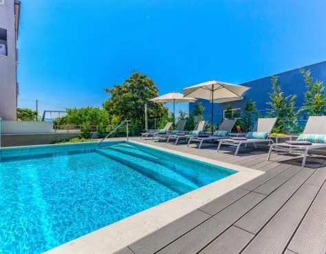 Smješten u Znjanu u Splitu, Sunny Garden Lux ima klima uređaj, terasu i pogled na bazen.