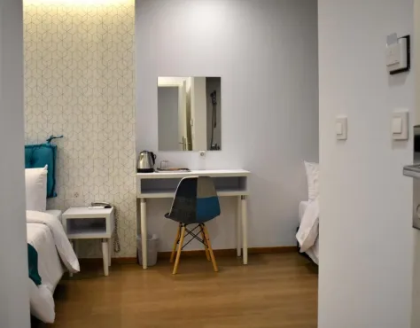 Apartmanski hotel se nalazi centralno u Atini, oko 20 km od plaže.