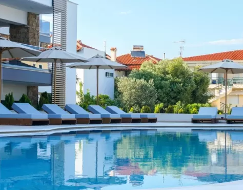 Blue Carpet Luxury Suites Pefkohori je odlično pozicionirani luskuzni objekat, smešten sa peščanoj uredjenoj plaži,