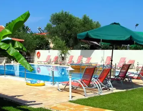 Philoxenia Village Hotel je smešten u vrtu i okružen maslinama, palmama i cvećem.