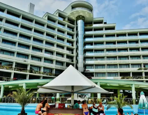 Hotel Mena Palace Sunčev Breg se nalazi u centralnom delu kompleksa, udaljen oko 150 metara od mora.