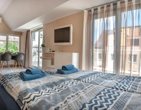 Smeštaj sa klima uređajem i terasom, Studio Maré Černomorec se nalazi u Černomorecu.