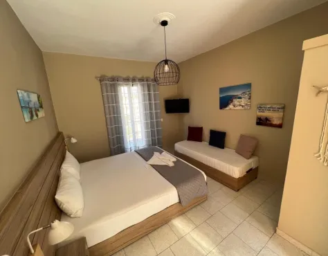 Hotel Manos Paros je udaljen oko 150 m od plaže Piperi i oko 500 m od slikovitog ribarskog sela Kiklada.