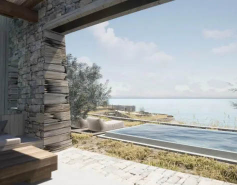 Ovaj vrhunski hotel uživa idealnu lokaciju smešten na podnožju planine Dikeos na beskrajnoj peščanoj plaži sa svojim smaragdno kristaln