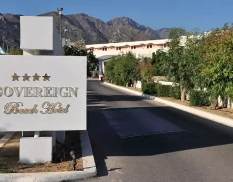 Hotel Sovereign Beach Kardamena Kos nalazi se preko puta plaže (izmedju se nalazi ulica), centar grada Kardamene je
