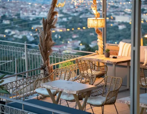 Ovaj apartmanski hotel se nalazi između planine i mora na ivici litice i uživa u spektakularnom panoramskom pogledu na Jonsko more i ok