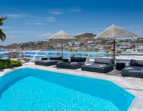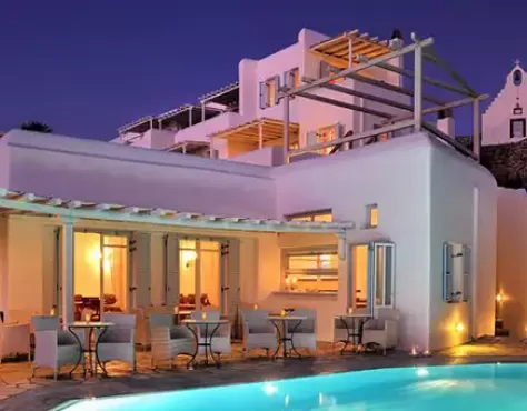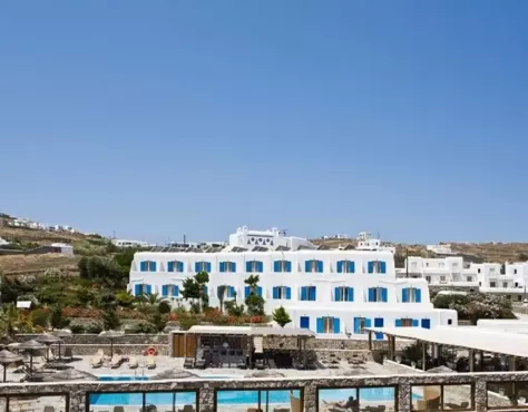 Hotel Mykonos Blu Grecotel Exclusive Resort Ornos Beach Mikonos se nalazi na plaži u mestu Psarou I udaljen je 4 ki