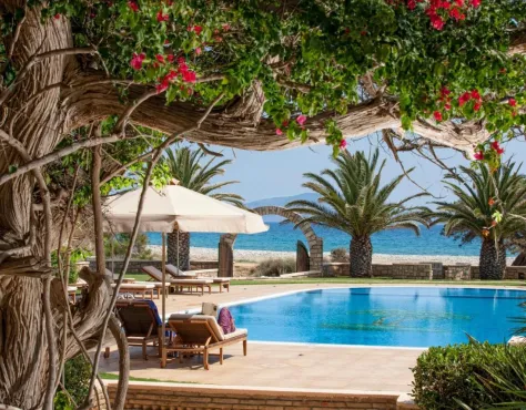 Hotel se nalazi na lepoj peščanoj plaži na jugozapadu ostrva, samo 17 km od grada Naksosa.