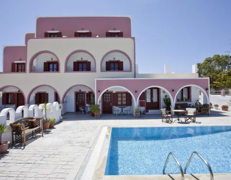 Hotel Dolphins Apartments Kamari Santorini se nalazi preko puta plaže letovališta Kamari od koje ga deli šetalište.