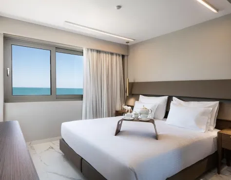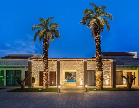 Hotel Mythos Palace Resort and Spa se nalazi na peščanoj plaži u mestu Kavros, na oko 20 kilometara udaljenosti od