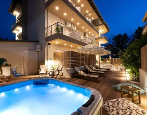 Hotel Vizantio Paralia se nalazi u centralnoj gradskoj zoni popularnog letovališta, od plaže udaljen oko 400 metara.