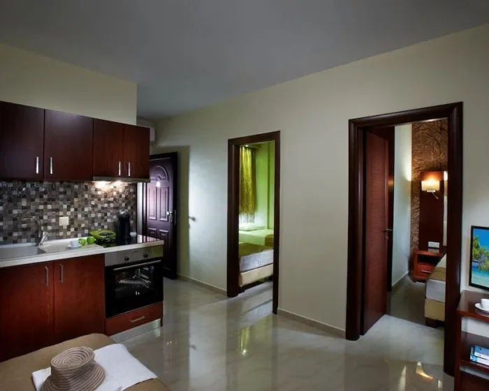 Sobe uključuju prostor za sedenje i kupatilo, a klima uređaj osigurava optimalnu temperaturu. Balkon je među standardnim sadržajima nekih soba. Sobe imaju bračni krevet i sofu. Kreveti za decu i dodatni kreveti mogu se zatražiti za mlađe goste. Sef pruža sigurno čuvanje lične imovine gostiju. Kuhinja dolazi sa aparatom za čaj/kafu. Telefon, televizor sa kanalima za plaćanje i WiFi (bez dodatne naknade) osiguravaju optimalnu udobnost. Kupatila su opremljena tušem i fenom za kosu. Apartmanski hotel ima porodične sobe i sobe za nepušače.