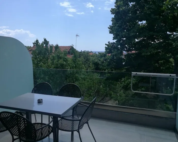 kupatilo, opremljena mini-kuhinja, klima-uredjaj, TV, terasa sa garniturom za sedenje