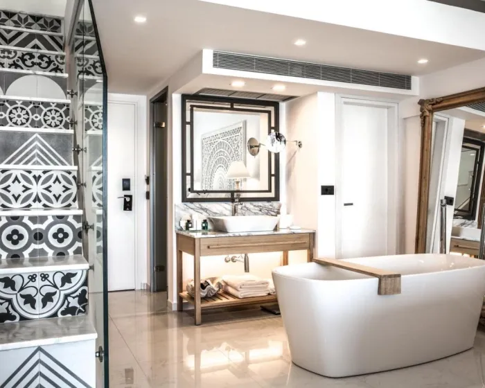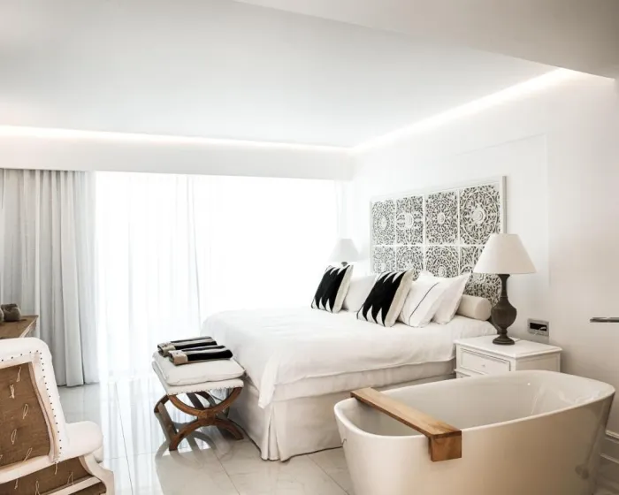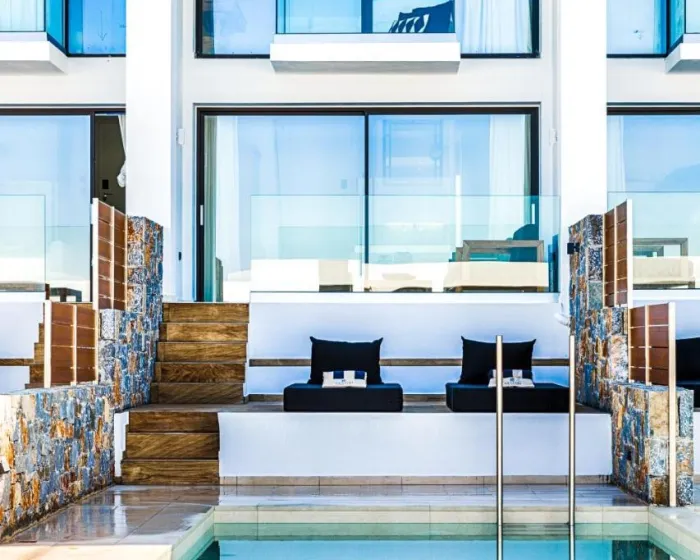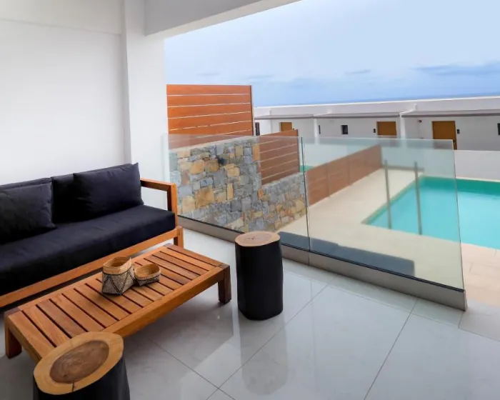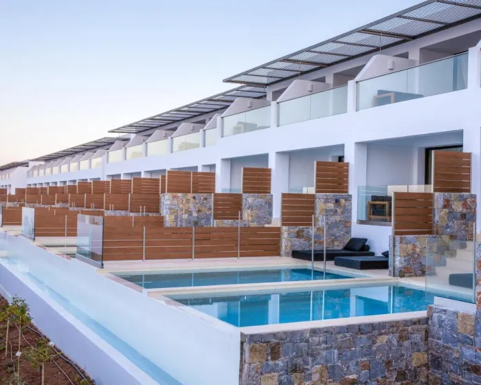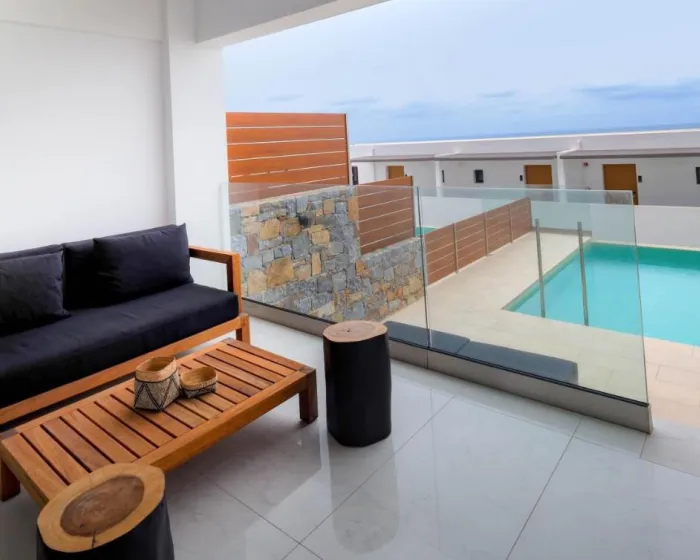 Sobe su opremljene dnevnim boravkom, kuhinjom i kupatilom. Klima uređaj, centralno grejanje i ventilator osiguravaju udobne temperature. U većini jedinica, gosti mogu uživati u pogledu na more sa terase ili balkona. Sobe imaju bračni krevet, krevet king size ili sofu na razvlačenje. Dostupne su odvojene spavaće sobe. Krevetići za decu i dodatni kreveti mogu se zatražiti za mlađe goste. Takođe postoji sef i radni sto ili, uz doplatu, mini bar. Za gosteovu udobnost, jedinice uključuju frižider, ringlu, mikrotalasnu pećnicu, aparata za kafu/čaj i mašinu za pranje sudova. Presa za pantalone je obezbeđena za gostovu udobnost. Ostale karakteristike uključuju telefon, TV, radio i WiFi (bez dodatne naknade). Dodaci u sobama uključuju papuče i dnevne novine. Kupatila imaju tuš, kadu i đakuzi kadu. Fen za kosu, ogledalo i bade mantili su dostupni za svakodnevnu upotrebu. Gosti takođe mogu rezervisati sobe prilagođene za kolica sa prilagođenim kupatilima. Hotel ima porodične sobe i sobe za nepušače.