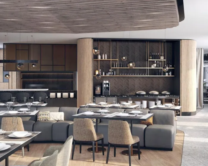U zajedničkom prostoru se nalazi restoran i bar. Hranljivi doručak se služi svakodnevno. Osoblje takođe rado pruža dečije obroke.
