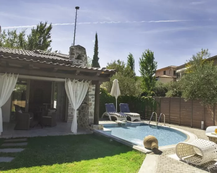 Svaka jedinica ima privatnu terasu, vrt i direktan pristup bazenu. U ponudi su vile sa odvojenim spavaćim sobama, dnevnim boravkom, potpuno opremljenom kuhinjom i luksuznim kupatilom. Sve smeštajne jedinice su klimatizovane i imaju besplatan WiFi, sef, televizor, aparat za kafu, mini-bar i druge pogodnosti.