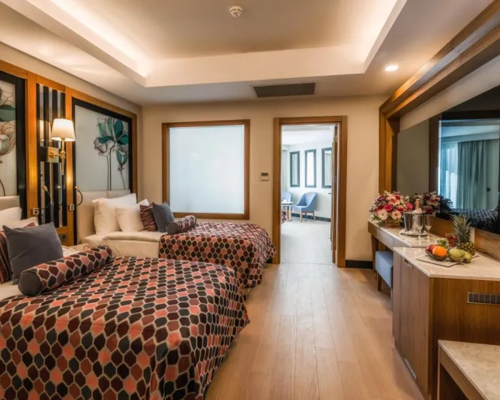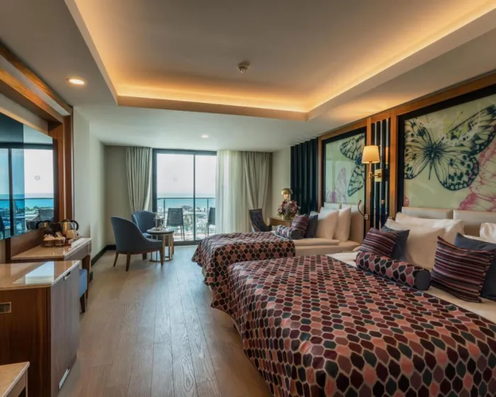Gosti imaju pogled na bazen sa balkona ili terase, koji su standardne funkcije nekih soba. Takođe su dostupni sef i mini bar. Gosti će takođe pronaći postaju za čaj/kafu među standardnim funkcijama. Telefon, flat-screen televizor sa satelitskim kanalima i WiFi (bez dodatne naplate) osiguravaju optimalnu udobnost. Kupatila su opremljena tušem i telefonom. 6 soba prilagođenih za osobe sa invaliditetom može se rezervisati. Dostupno je 115 porodičnih soba za roditelje sa decom.