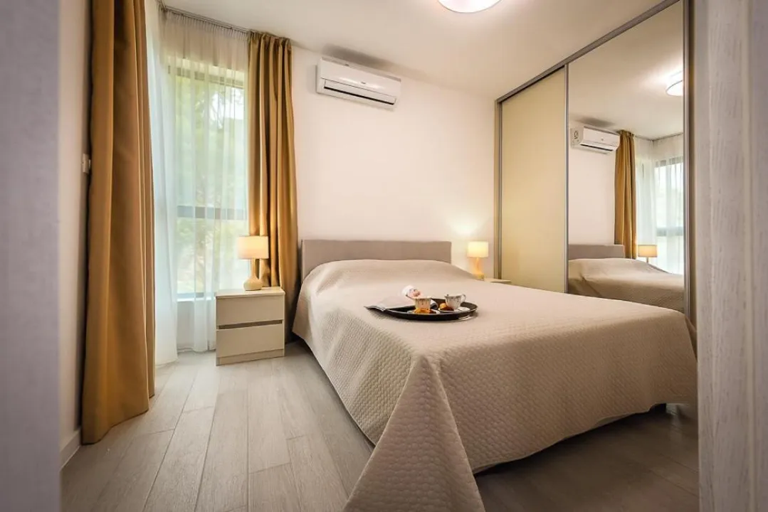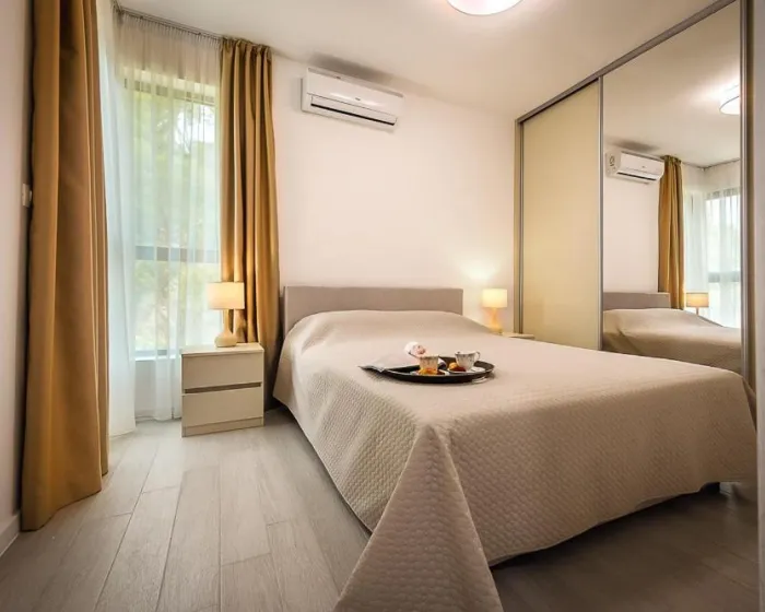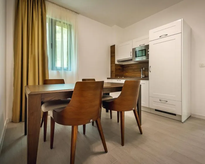 Neki apartmani imaju terasu, klima uređaj, trpezarijski deo i prostor za sedenje sa satelitskom TV ravnog ekrana. Neki apartmani imaju balkon i/ili terasu sa pogledom na bazen i prostorom za ručavanje na otvorenom. U apartmanskom kompleksu, sve smeštajne jedinice imaju privatno kupatilo.