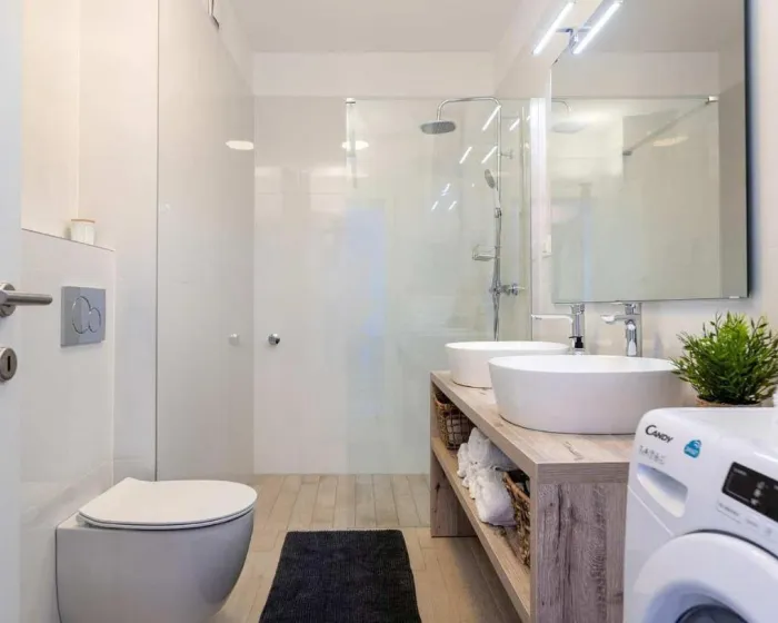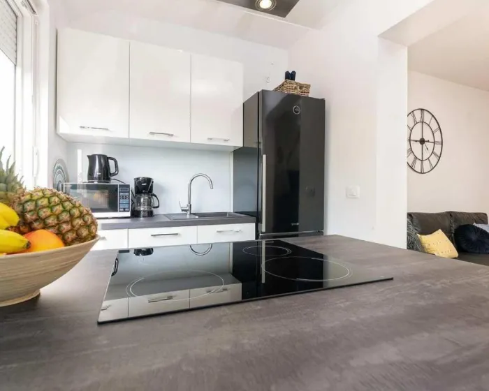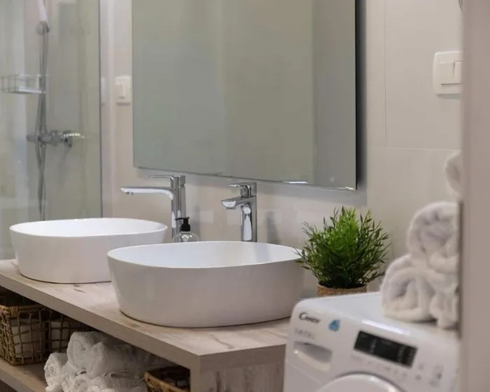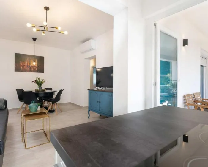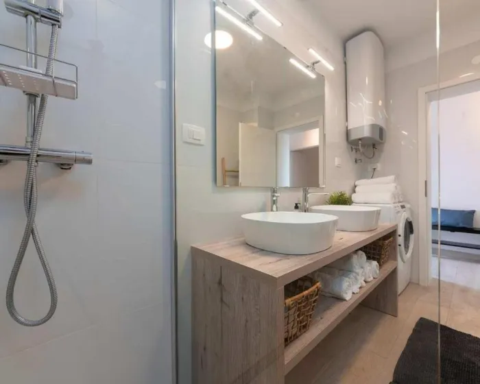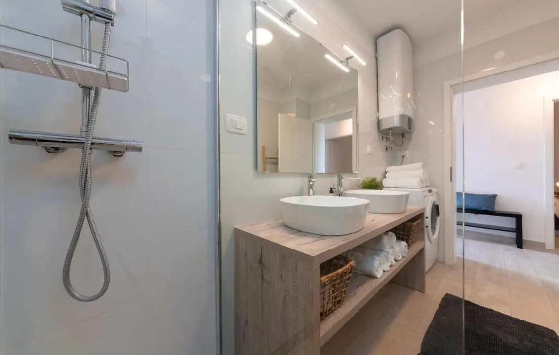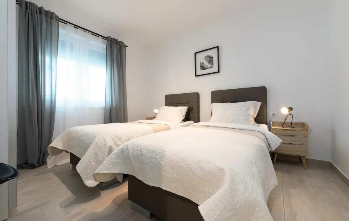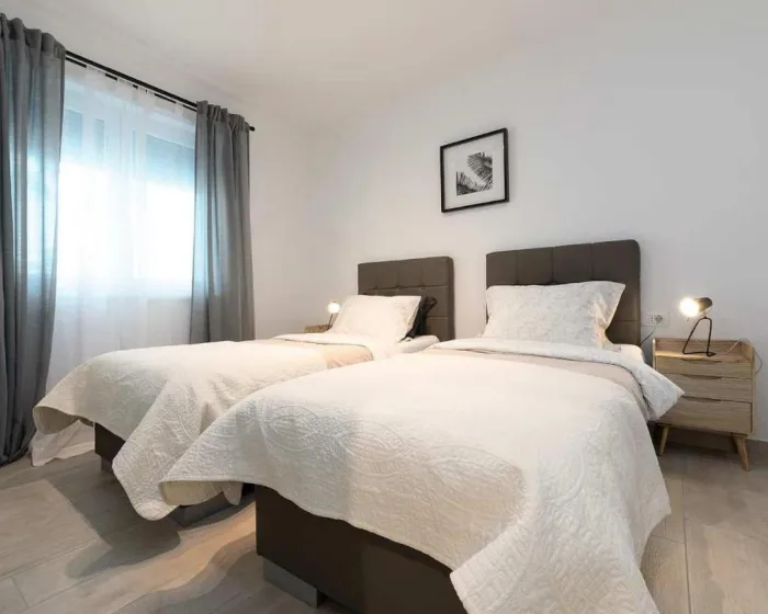 Prostrani stan opremljen je sa 2 odvojene spavaće sobe, 1 kupatilom, potpuno opremljenom kuhinjom sa trpezarijom i mašinom za pranje sudova, kao i dnevnim boravkom sa TV-om. Za dodatnu privatnost, smeštaj ima zaseban ulaz.