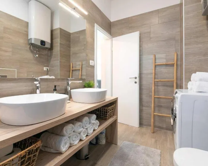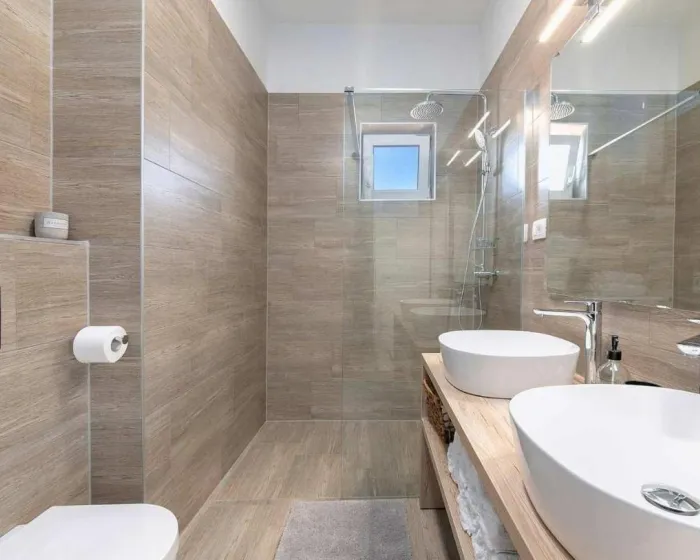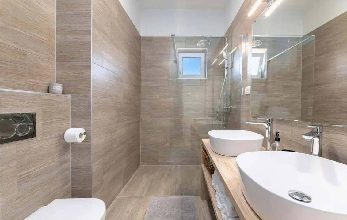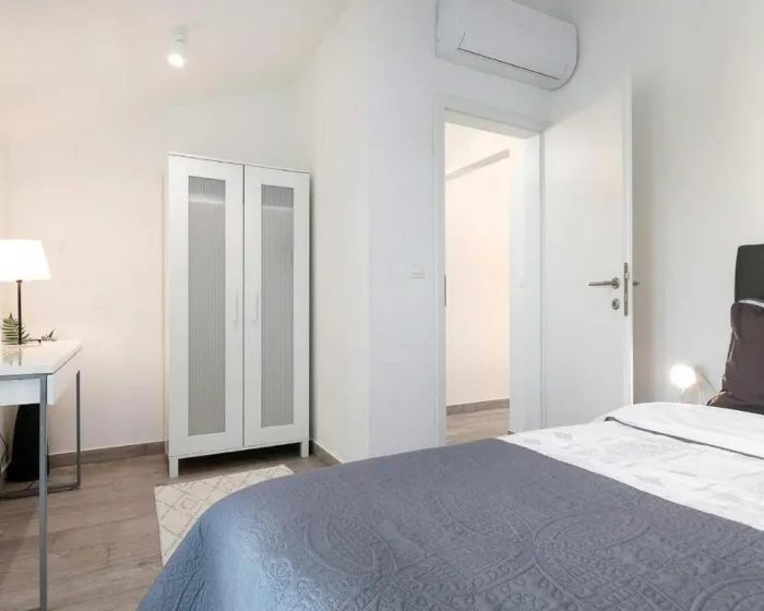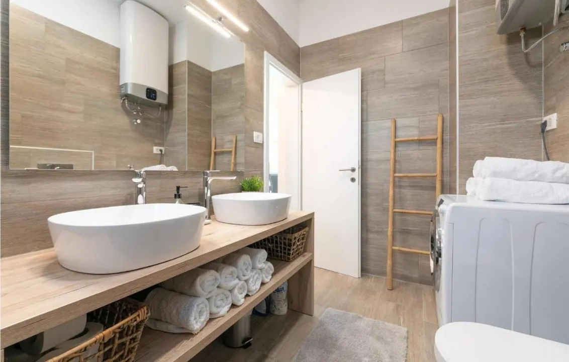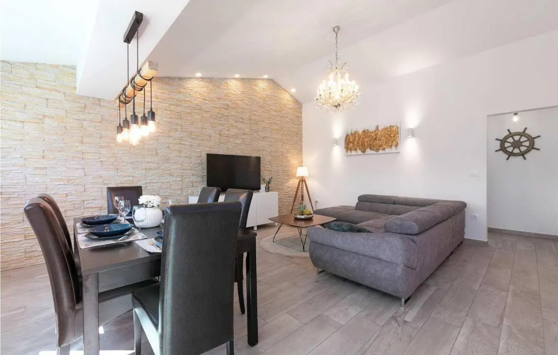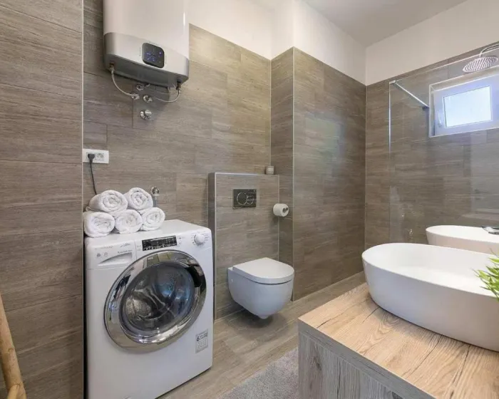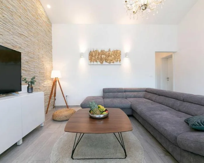 Prostrani apartman ima 2 odvojene spavaće sobe, 1 kupatilo, potpuno opremljenu kuhinju sa trpezarijom i mašinom za pranje sudova, kao i dnevni boravak sa TV-om. Radi veće privatnosti, smeštaj ima privatni ulaz.