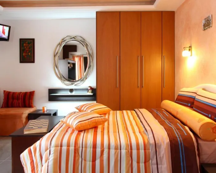 Sobe su opremljene klima-uređajem i centralnim grejanjem kako bi se osigurala prijatna temperatura. Većina soba ima balkon sa pogledom na more, savršen za opuštanje. Sobe su opremljene queen-size krevetom i kaučem na razvlačenje, dok su dodatni ležajevi dostupni na zahtev. Sef omogućava sigurno čuvanje ličnih stvari. Standardna oprema uključuje satelitsku televiziju i besplatan WiFi. Kupatila su opremljena tušem, fenom za kosu i dodatnim telefonom. Hotel raspolaže porodičnim i sobama za nepušače, kao i sobama prilagođenim osobama sa invaliditetom.