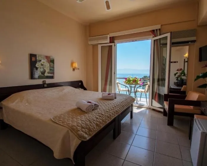 Klima uređaj i centralno grejanje obezbeđuju da sobe održavaju udobne temperature. Gosti mogu uživati u pogledu na more sa balkona ili terase. Sobe imaju bračni krevet ili kauč na razvlačenje. Dostupne su odvojene spavaće sobe. Kreveti za decu mogu se zatražiti za mlađe goste. Vrednosti mogu sigurno biti smeštene u sef. Dodatne pogodnosti uključuju frižider i mini bar. Direktno biranje telefona, TV, radio i WiFi (bez dodatne naplate) pružaju sve što je potrebno za udoban odmor. Kupatila su opremljena tušem i kadom, kao i fenom za kosu. Za dodatnu udobnost u kupatilima, gostima se nude kozmetički proizvodi. Hotel ima porodične sobe i sobe za nepušače.