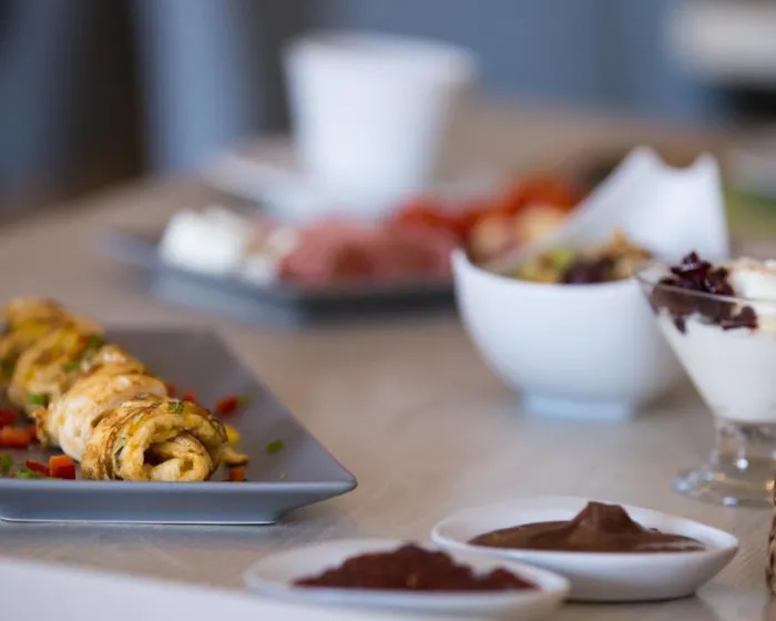 Različite opcije za obroke su dostupne, uključujući restoran, kafić i bar. Kontinentalni doručak i ručak se služe svakog dana. Takođe su dostupni posebni obroci, uključujući obroke po dijeti. Pored toga, dostupne su posebne opcije za ketering i piknike.