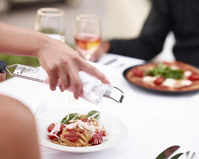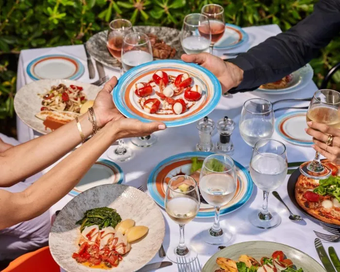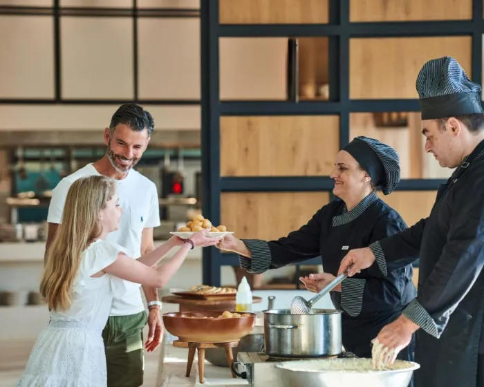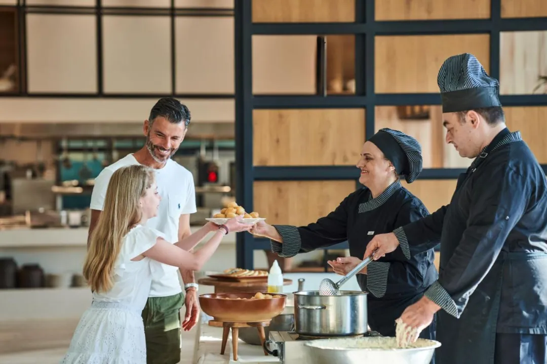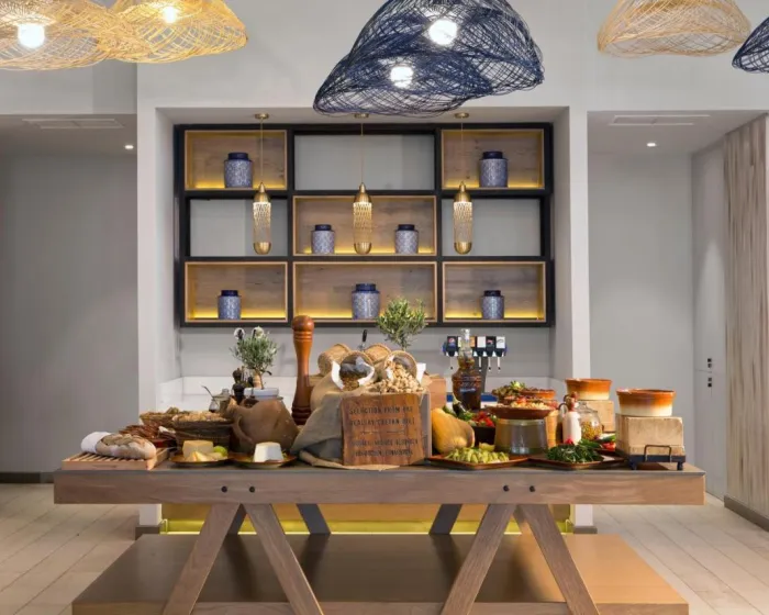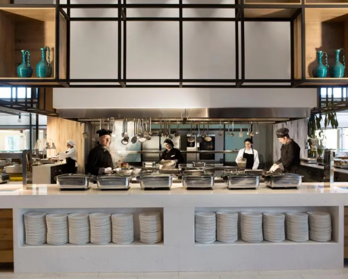 Objedišta uključuju trpezariju, kafić, pub i hotelski bar. Više specijaliteta čeka goste u klimatizovanom, dvoristu restoranu za nepušače. Osvježavajuća pića u baru na plaži su savršen način da uživate u toplom vremenu. Mogu se rezervisati svi obroci uključeni. Za doručak, ručak i večeru, gosti se poslužuju na bifeu ili biraju svoje omiljeno jelo sa menija (za večeru). Besplatno se mogu pripremiti obroci bez glutena, vegetarijanska jela, dječiji obroci i obroci bez laktoze na zahtjev. Show cooking je posebna atrakcija. U jelovniku pića se nalazi raznovrsna ponuda alkoholnih i bezalkoholnih pića, kao i internacionalnih brendova.