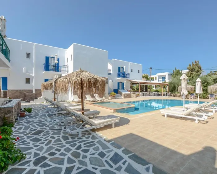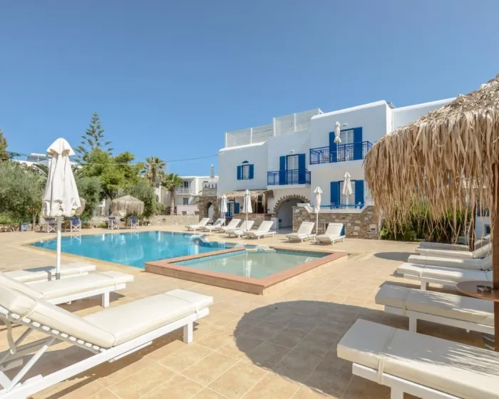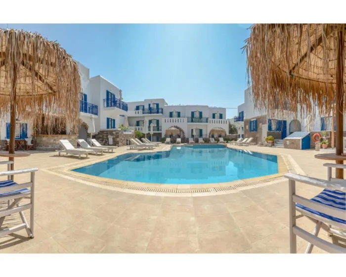 Porodični apartmanski hotel Agios Prokopios Hotel nalazi se na 150 m od plaže Agios Prokopios - plaže jedinstvene lepote, poznate po kristalno čistim vodama i belom pesku, u blizini plaže Agia Anna. Okolina hotela je mali turističko naselje gde gosti mogu pronaći taverne, barove, restorane, vešeraj, banku, prodavnicu karata za trajekte, mini markete, iznajmljivanje automobila i skutera i veze sa javnim prevozom. Grad Naksos je udaljen oko 5 km od plažnog hotela, a aerodrom Naksos je udaljen oko 3 km.