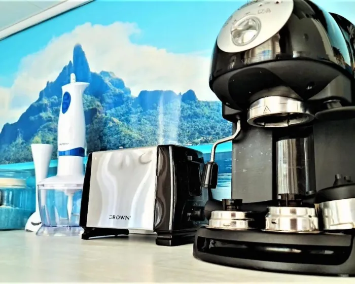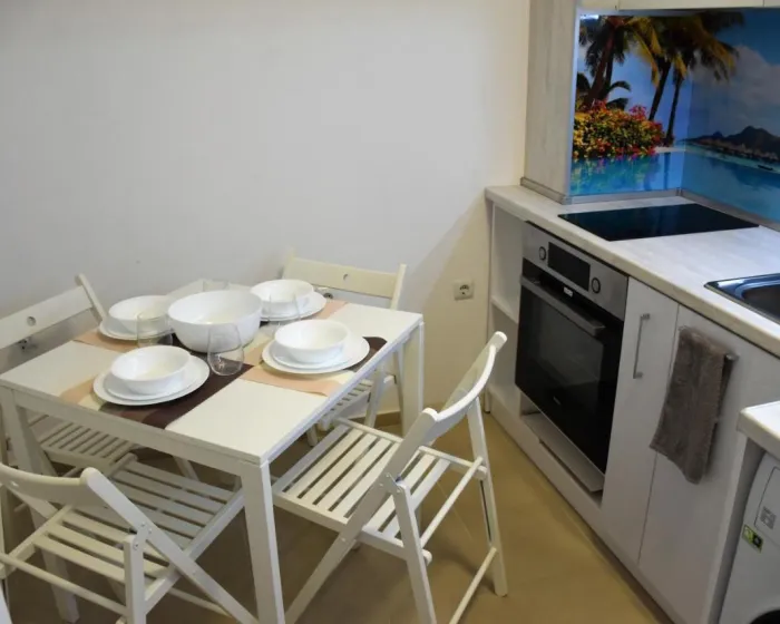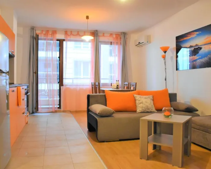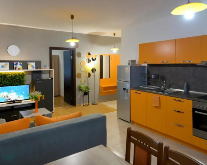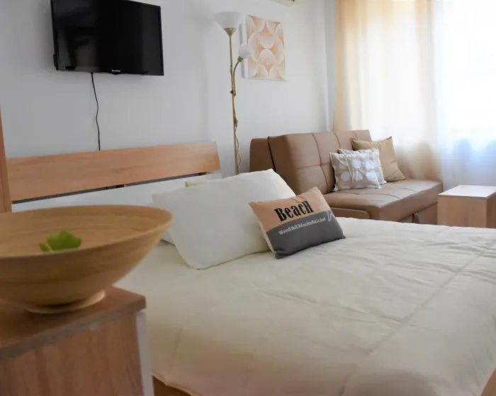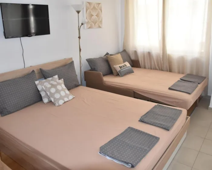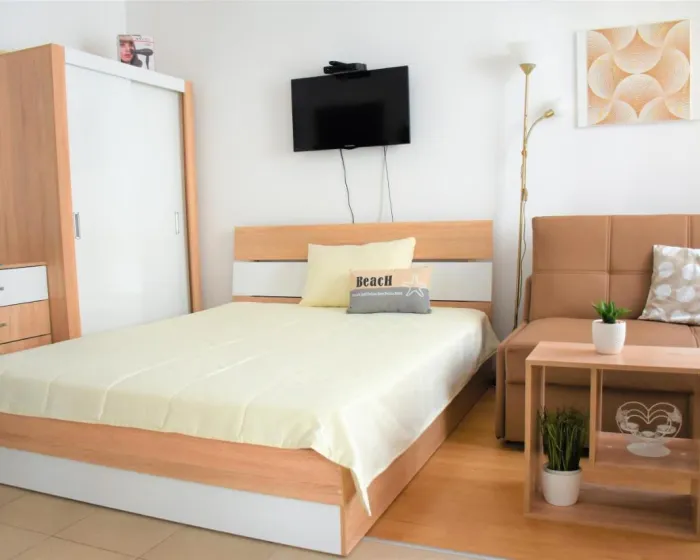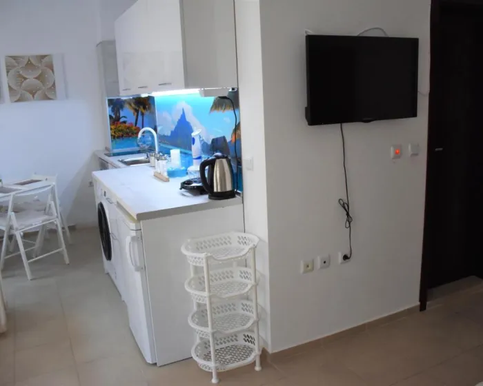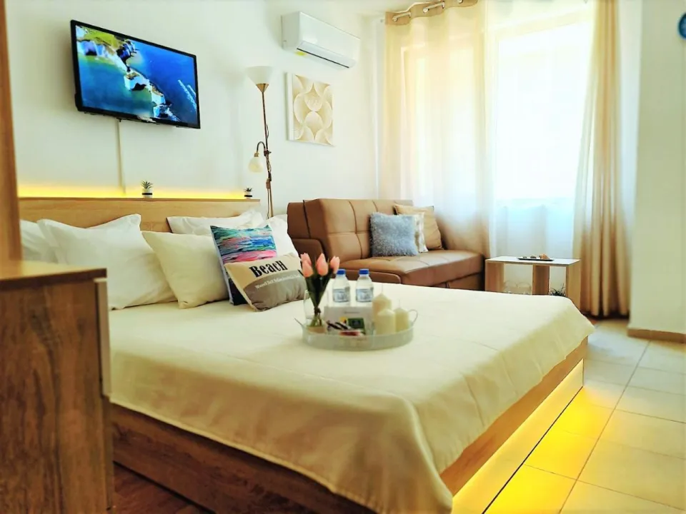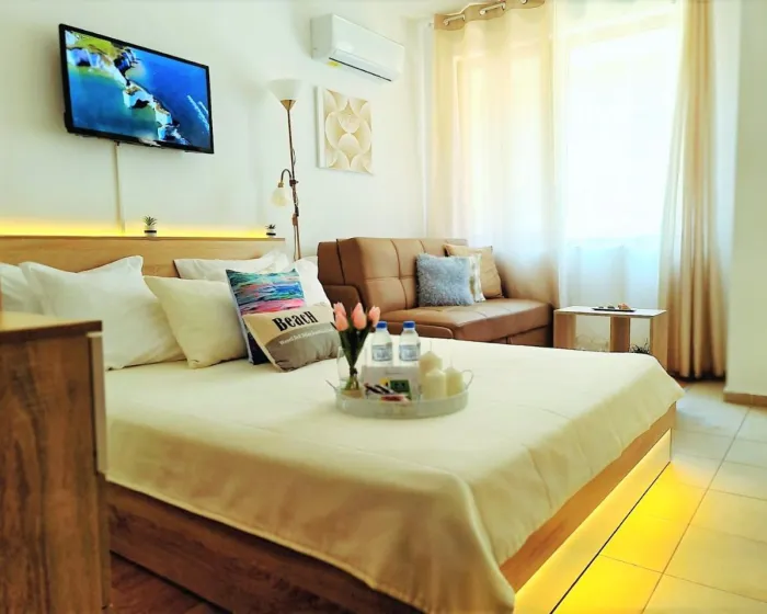 Apartman gostima pruža terasu, pogled na more, dnevni boravak, satelitsku ravnu TV, potpuno opremljenu kuhinju sa rernom i tosterom, kao i privatno kupatilo sa tuš kabinom i fenom za kosu. Frižider, šporet i posuđe takođe su obezbeđeni, kao i aparat za kafu i čajnik. U apartmanskom kompleksu, sve jedinice su opremljene posteljinom i peškirima.