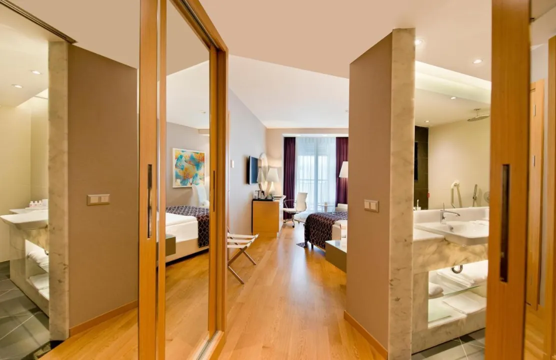 Klima uređaj osigurava da sobe održavaju idealnu temperaturu. Gosti mogu uživati u pogledu na more sa balkona ili terase. Za mlade putnike, mogu se obezbediti dečji krevetići. Takođe postoji sef i radni sto ili, uz doplatu, minibar. Gosti će takođe pronaći aparat za kafu/čaj među standardnim sadržajima. Ostali sadržaji uključuju telefon, flat-screen televizor i WiFi (bez dodatne naknade). Izbor jastuka osigurava udoban san. Fen za kosu i bade mantili obezbeđeni su u kupatilima, koja uključuju i dečju kadu. Porodične sobe su dostupne za roditelje sa decom.