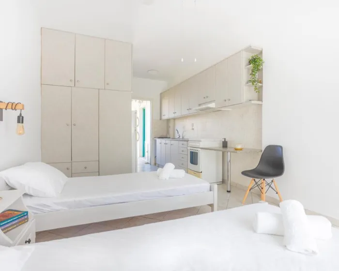 Smeštajne jedinice imaju keramičke podove i potpuno opremljenu kuhinju sa rernom, trpezarijski deo, flat screen TV i sopstveno kupatilo sa tušem i fenom za kosu. Pojedine jedinice imaju terasu ili balkon sa pogledom na more. Posteljina i peškiri su obezbeđeni u svim smeštajnim jedinicam