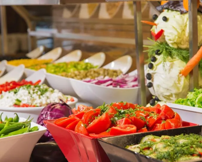 Usluge ishrane uključuju trpezariju, kafe i bar. Gostima je na raspolaganju ne pušeći restoran sa klima uređajem, visokim stolicama i odvojenim prostorom za pušače. Mogućnosti ishrane uključuju polupansion i sveuključeno. Svi uključeni gosti mogu uživati u posebnim dodacima poput grickalica, uz dodatni izbor alkoholnih i bezalkoholnih pića. Doručak, ručak i večera nude mnogo ukusnih opcija. Dijetetska jela, bezglutenska jela, vegetarijanska jela i dečija jela mogu se pripremiti na zahtev. Hotel takođe nudi posebne opcije ishrane. Kuvanje uživo je posebno atraktivna atrakcija.