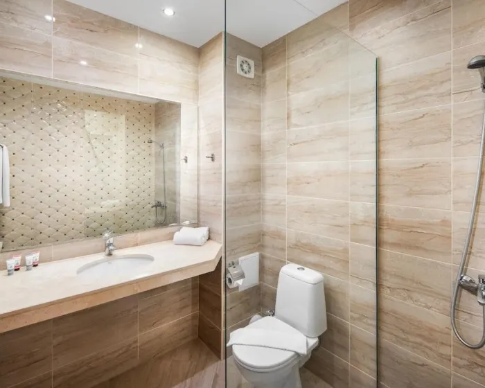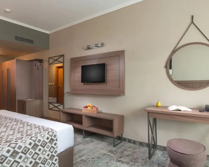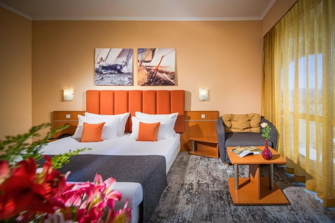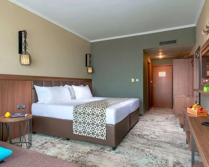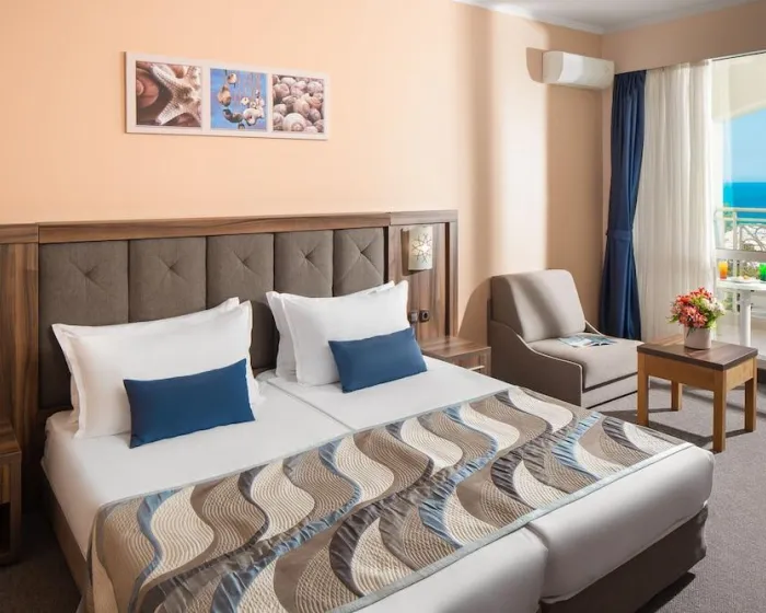 Sobe su opremljene klima uređajem i centralnim grejanjem. Gosti mogu uživati u pogledu na more sa balkona ili terase. Sve sobe su popločane i uključuju bračni krevet i kauč na razvlačenje. Dostupne su odvojene spavaće sobe. Kreveti za decu i pomoćni kreveti mogu se zatražiti za mlađe goste. Dostupni su sef i radni sto. Kuhinja dolazi sa frižiderom, mini frižiderom i mikrotalasnom pećnicom. Takođe su dostupni i pegla i presa za pantalone. Direktno biranje telefona, televizor sa satelitskim/ kablovskim kanalima, adapter za utičnice i WiFi (bez dodatne naplate) obezbeđuju optimalnu udobnost. Kupatila su opremljena tušem i kadom, kao i fenom za kosu. Kao posebna pogodnost u kupatilima, gostima se nude kozmetički proizvodi. Gosti takođe mogu rezervisati sobe prilagođene za invalide sa pristupačnim kupatilima za invalide. Hotel ima porodične sobe, sobe za nepušače i sobe za pušače.