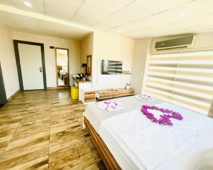 Mnoge jedinice imaju pogled na more, što stvara posebno divnu atmosferu. Sobe imaju bračni krevet i sofu na razvlačenje. Dodatni kreveti mogu biti zatraženi. WiFi (bez dodatne naknade) dolazi kao standard u sobama. Hotel ima porodične sobe i sobe za nepušače.