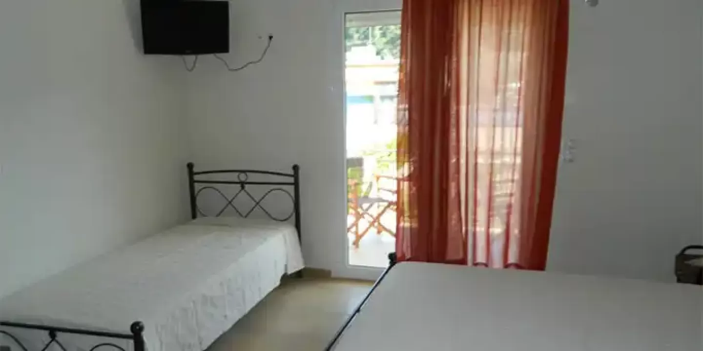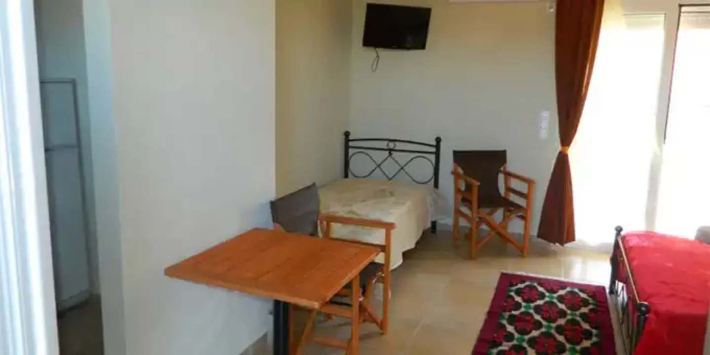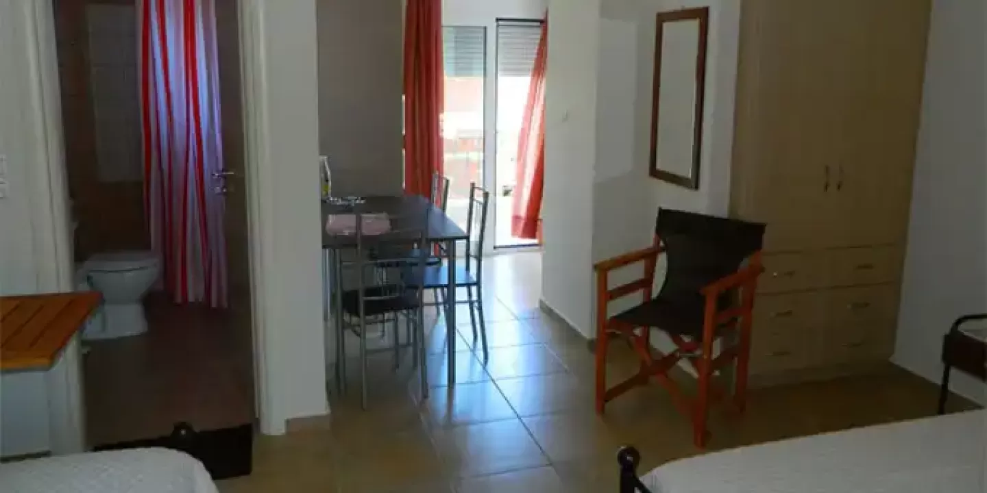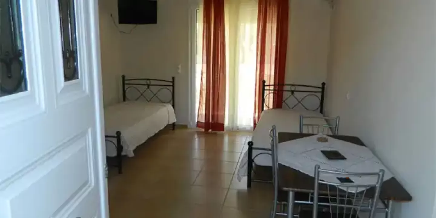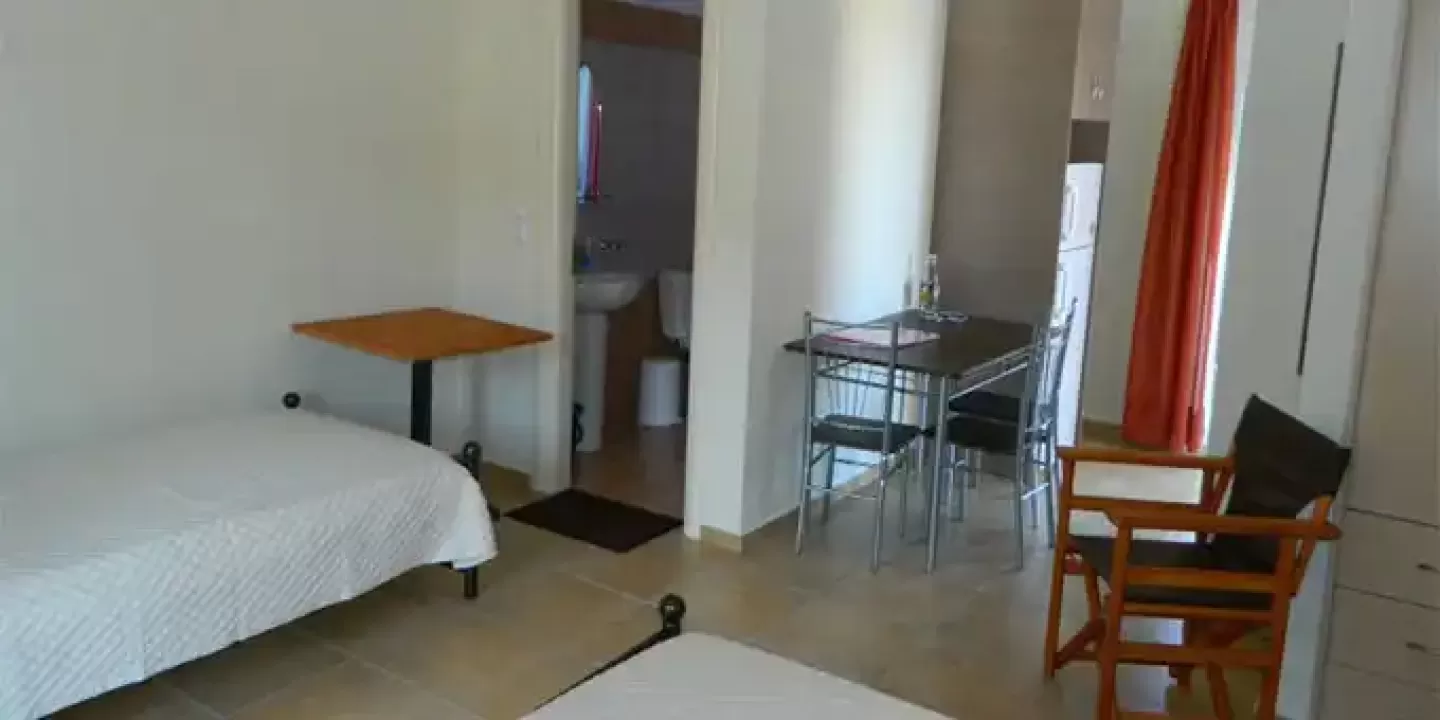 1/3 studio - u jednoj prostoriji mini kuhinja, jedan običan ležaj i jedan bračni ležaj.