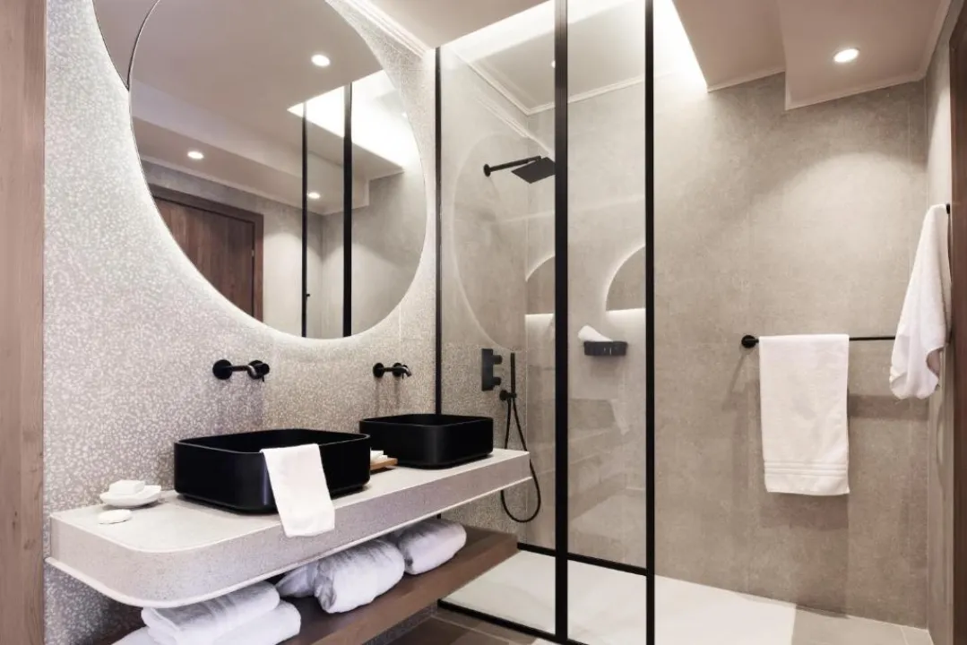 Junior suite pogled bašta Oko 30 m², sa pogledom na vrt. Modernog dizajna sa toplim i elegantnim enterijerom, predvidjena za 2 osobe, king size francuski ležaj.