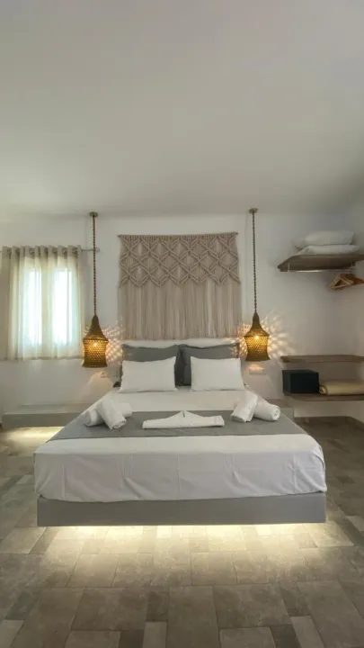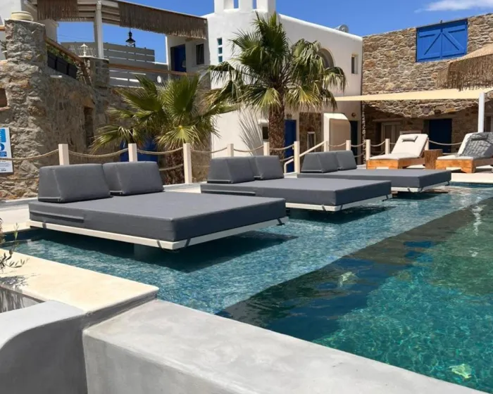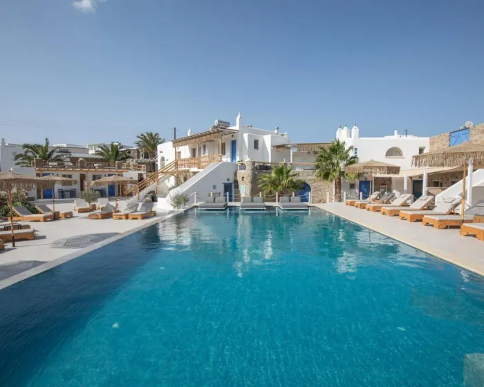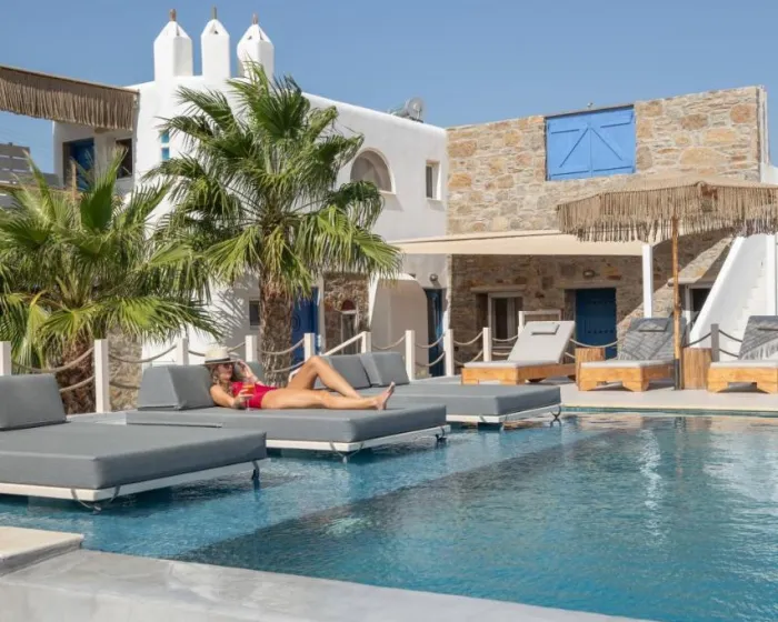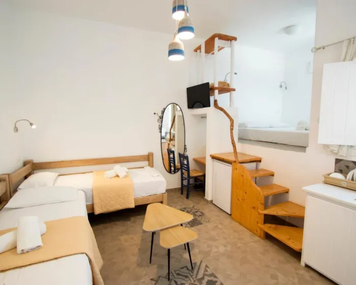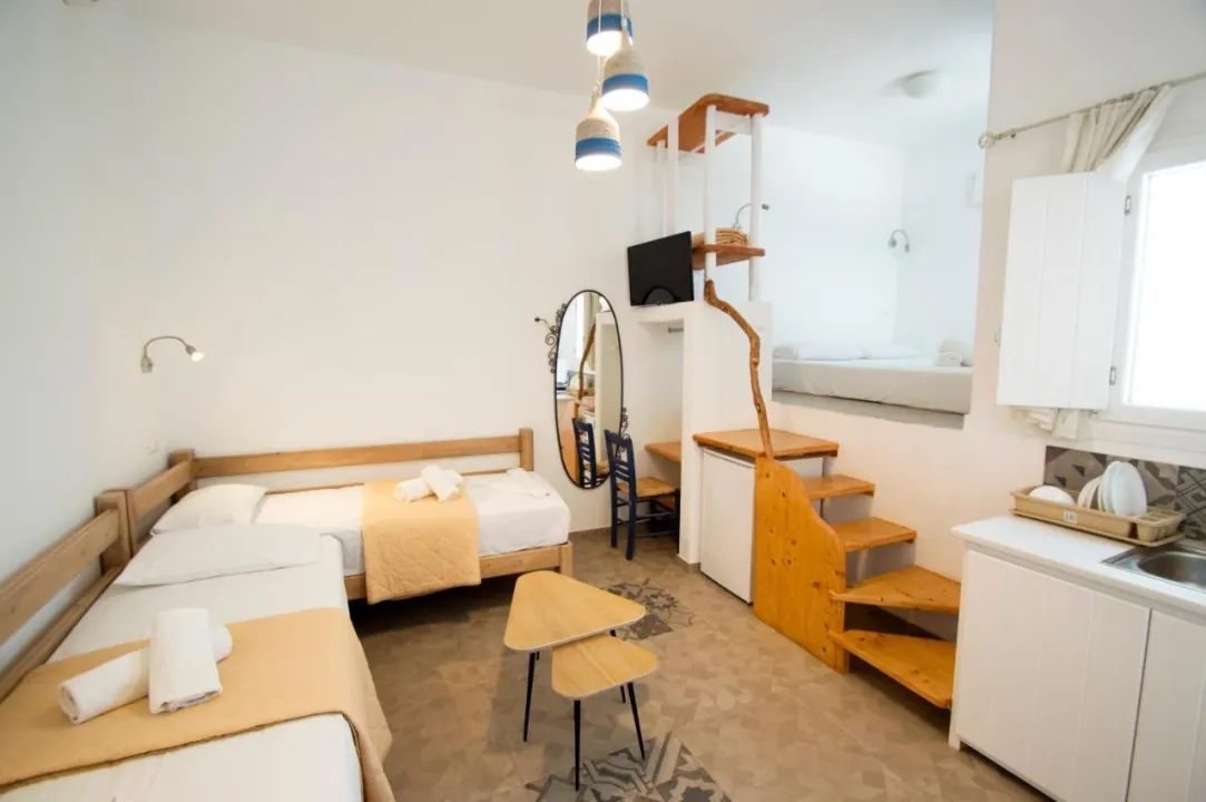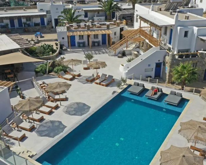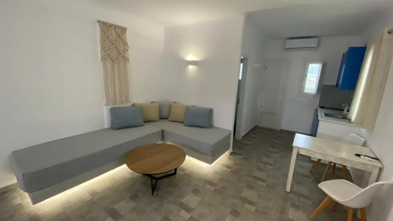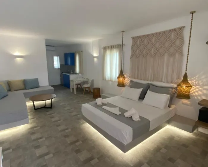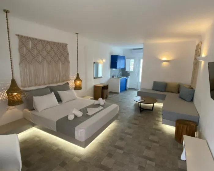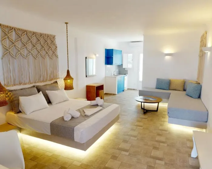 Ovaj apartmanski hotel dočekuje goste u gradu Mikonosu.