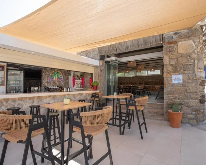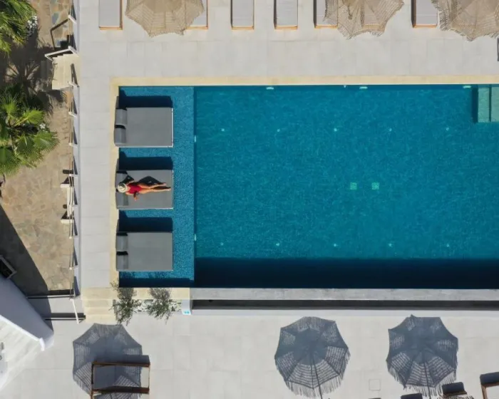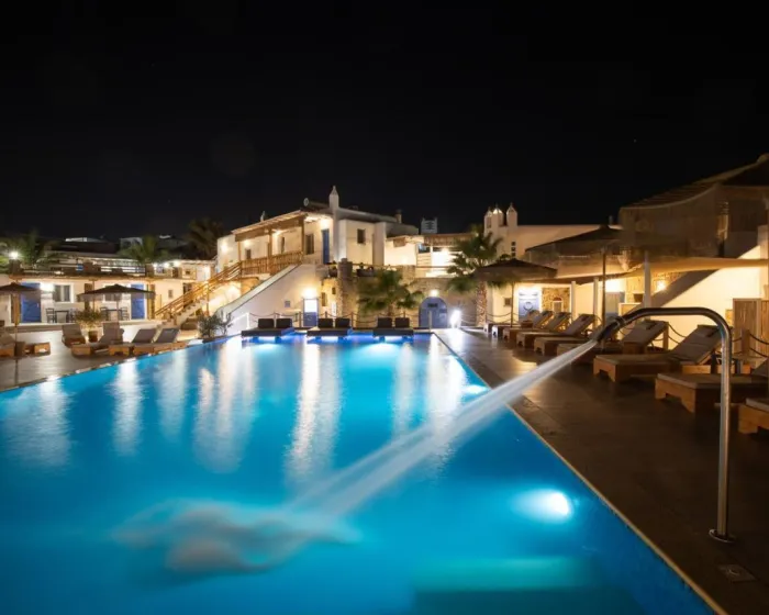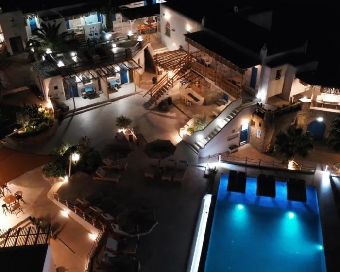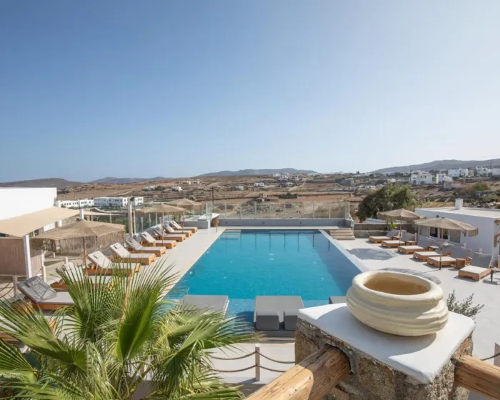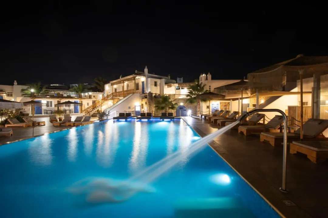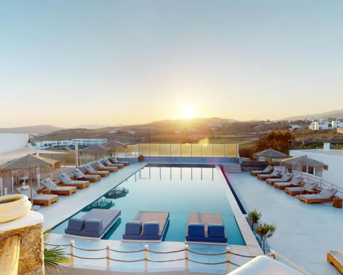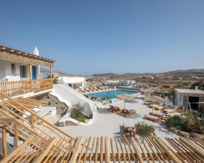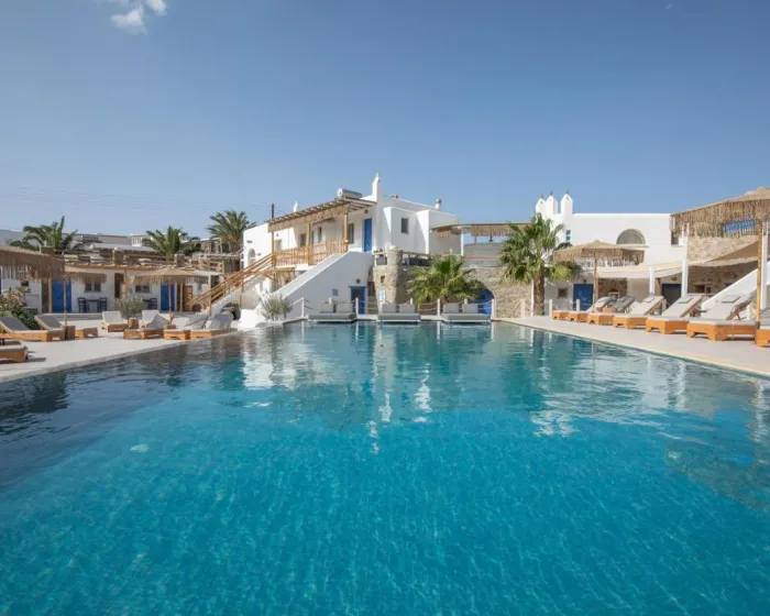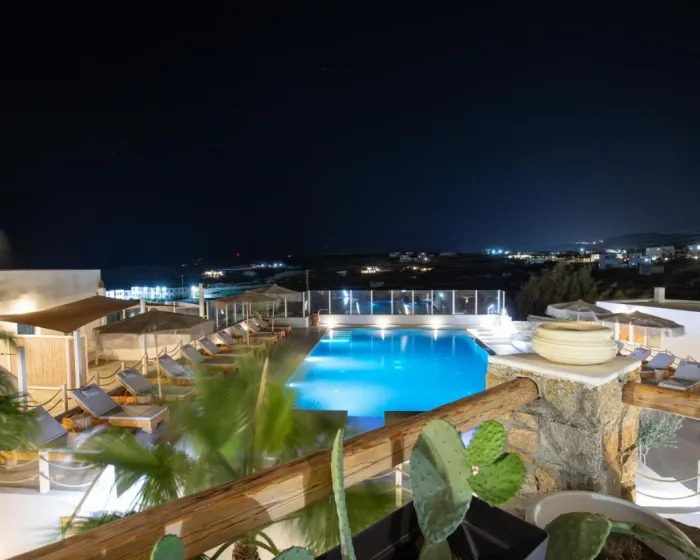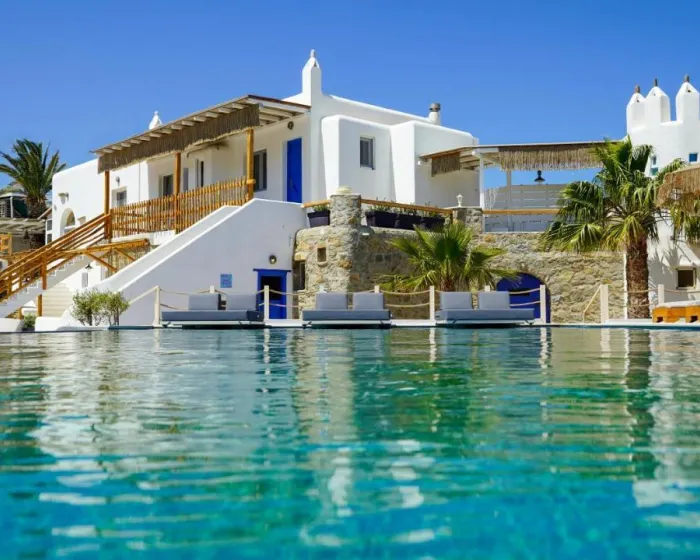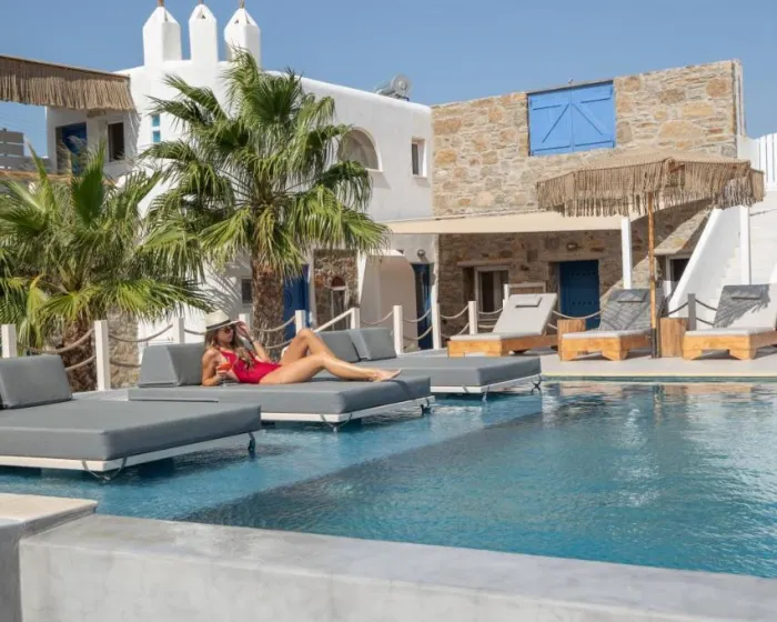 Ovaj apartmanski hotel dočekuje goste u gradu Mikonosu.