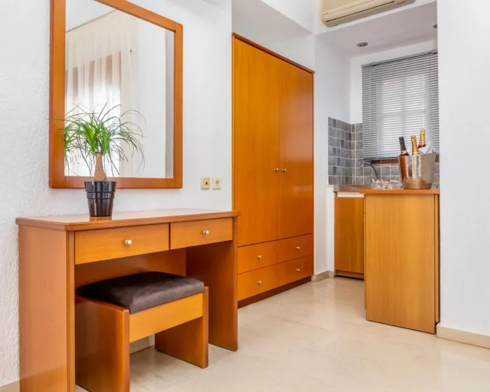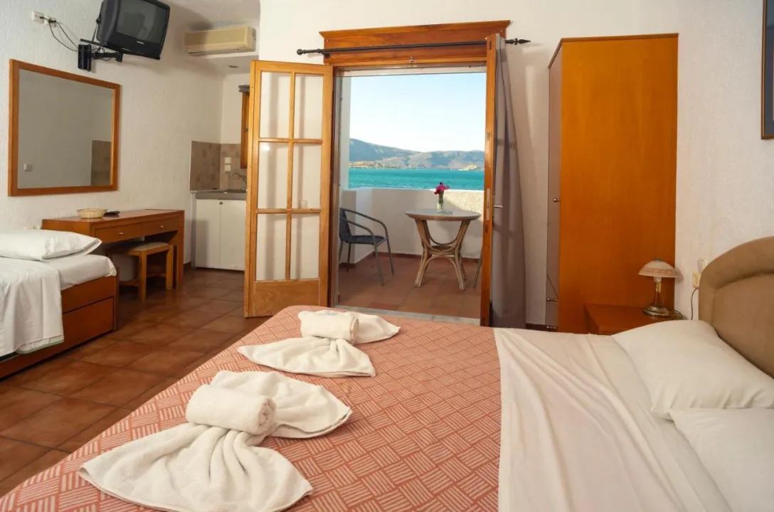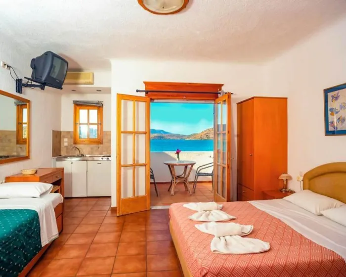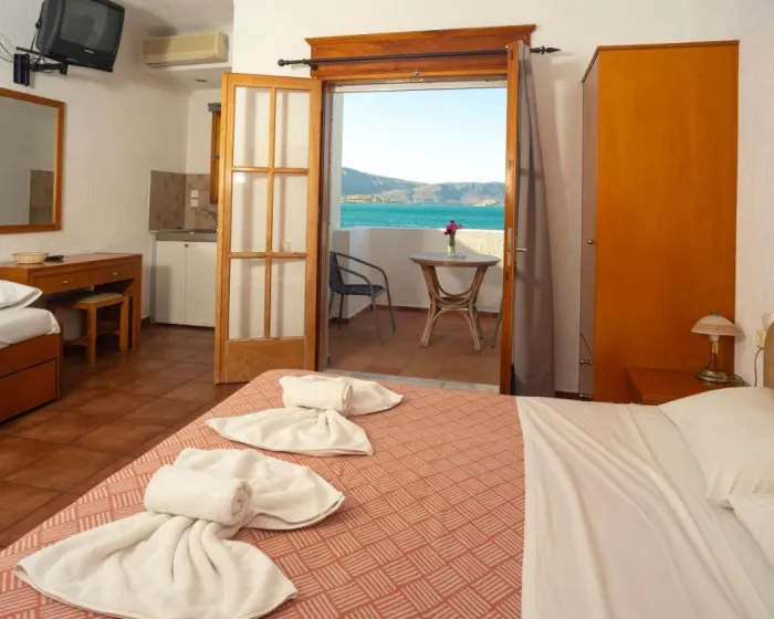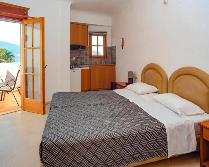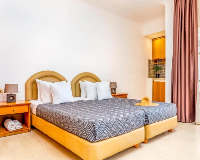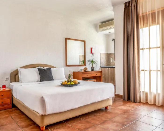 Klima uređaj i centralno grejanje osiguravaju da sobe održavaju prijatne temperature. Gosti mogu uživati u pogledu na more sa balkona ili terase. Sobe imaju bračni krevet i kauč na razvlačenje. Dodatni kreveti se mogu zatražiti. Sef obezbeđuje sigurno skladištenje lične imovine gostiju. Kuhinja sa frižiderom, mikrotalasnom pećnicom i aparatom za čaj/kafu je takođe standardni deo opreme. Telefonom, TV-om i WiFi (bez dodatne naknade) takođe su obezbeđeni. Papuče su uključene. Fen za kosu i bade mantili su dostupni u kupatilima, koja su opremljena tušem i kadom. Gosti takođe mogu rezervisati sobe prilagođene za goste u invalidskim kolicima sa prilagođenim kupatilima. Hotel ima porodične sobe i sobe za nepušače.