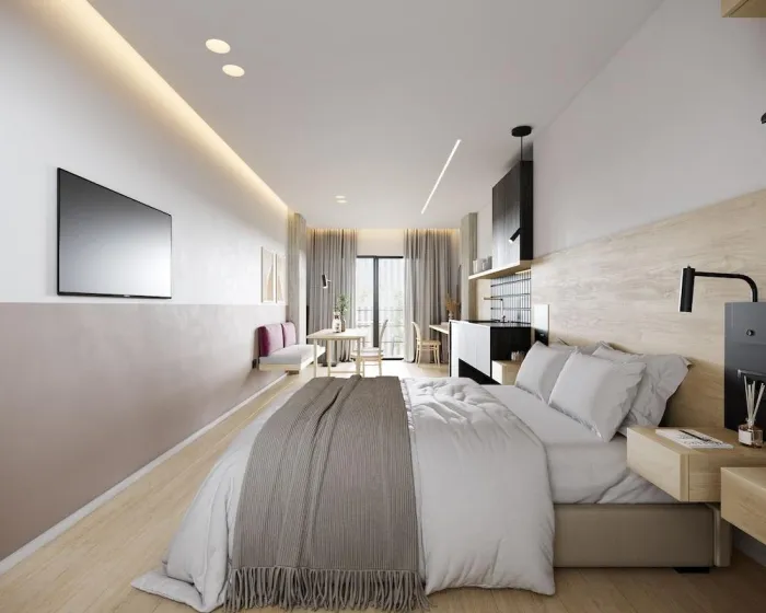 Klima uređaj i centralno grejanje osiguravaju da sobe održavaju udobne temperature. Gosti mogu uživati u pogledu na grad sa balkona ili terase. Sobe imaju bračni krevet ili krevet queen size. Dodatni kreveti mogu biti zatraženi. Takodje su dostupni sef i radni sto. Kuhinja sa frižiderom i aparatom za kafu/čaj takođe je obezbeđena kao standard. Pegla je obezbeđena radi gostijuove udobnosti. Telefonom, televizorom sa satelitskim/kablovskim kanalima, adapterom za utičnicu, alarmom i WiFi-jem (bez dodatne naplate) takođe su obezbeđeni. Papuče su uključene. Fen za kosu i bade mantili su dostupni u kupatilima, koja su opremljena tuš kabinom. Kozmetički proizvodi i izbor peškira pružaju dodatnu udobnost u kupatilima. Hotel ima sobe za nepušače.