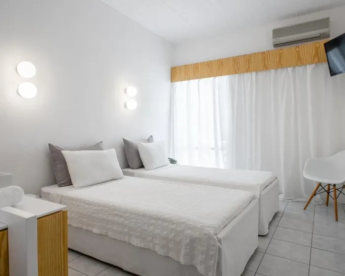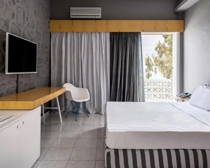 Klima uređaji i centralno grejanje osiguravaju prijatnu temperaturu u sobama. Većina jedinica ima balkon sa pogledom na more, gde gosti mogu da se opuste. Sobe imaju bračni ili queen-size krevet. Dodatni ležajevi dostupni su na zahtev. Sef i radni sto takođe su na raspolaganju. Dodatne pogodnosti uključuju frižider i mini frižider. Direkni telefon, televizor sa satelitskim/kablovskim kanalima i WiFi (bez dodatne naknade) pružaju sve neophodno za udoban boravak. Kupatila su opremljena tuš kabinom i fenom za kosu, a kao dodatna pogodnost dostupni su kozmetički proizvodi. Gostima su dostupne i sobe prilagođene osobama sa invaliditetom, sa kupatilima prilagođenim njihovim potrebama. Hotel nudi sobe za pušače i sobe za nepušače