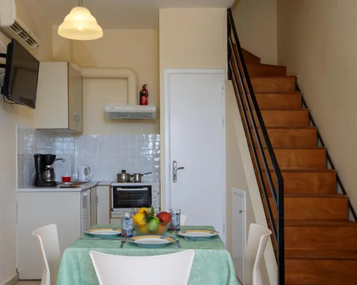 Maisonette Na prvom nivou - kuhinja, 2 odvojena kreveta, WC; Na gornjem nivou se nalazi odvojena spavaća soba sa francuskim ležajem i kupatilo.