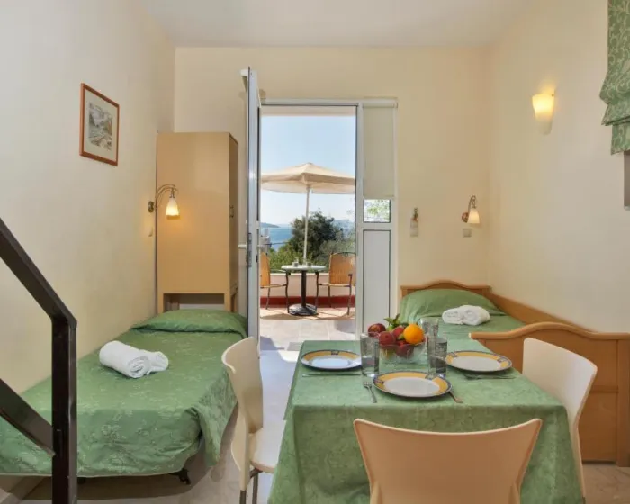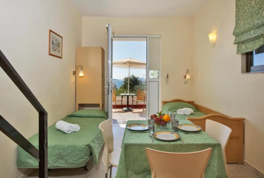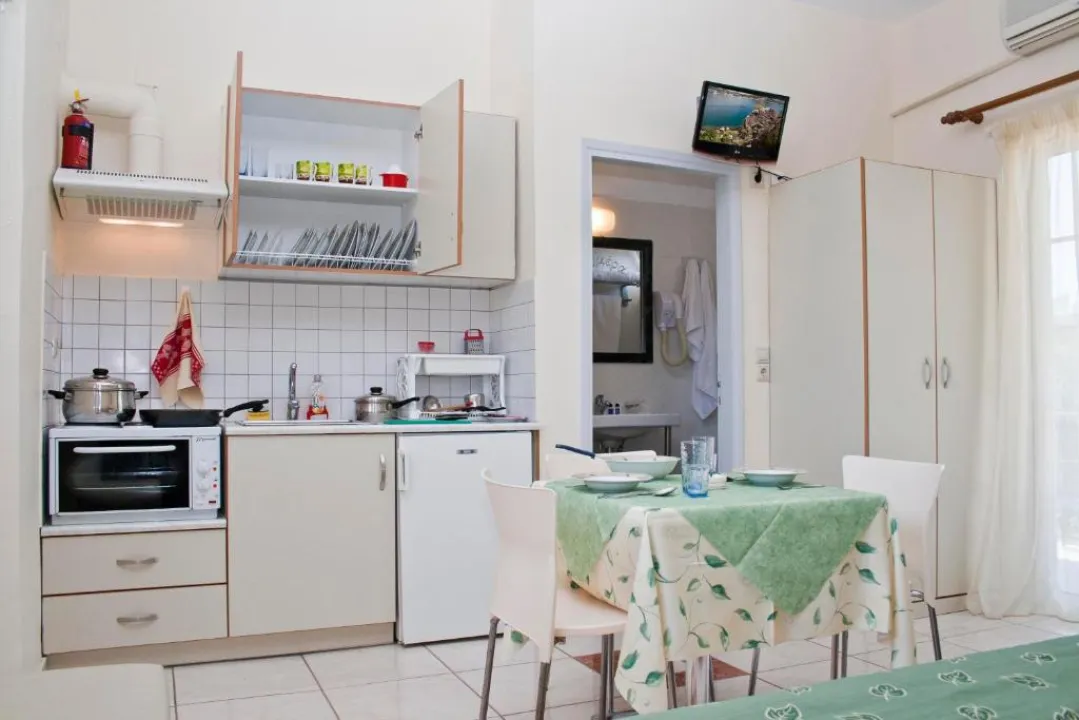 Sve smeštajne jedinice su klimatizovane i imaju kuhinju i kupatilo. Većina soba ima balkon ili terasu sa pogledom na more. U sobama se nalazi francuski ležaj, queen size krevet ili sofa na razvlačenje. Na raspolaganju su i odvojene spavaće sobe. Vredne stvari se mogu odložiti u sef. U kuhinjskom delu se nalazi frižider i aparat za čaj/kafu. Za dodatnu udobnost tu su telefon, TV sa satelitskim kanalima i besplatan WiFi. Kupatila su opremljena tušem i fenom za kosu, a dodatni komfor pružaju kozmetički proizvodi i peškiri. U ponudi su porodične i sobe za nepušače.
