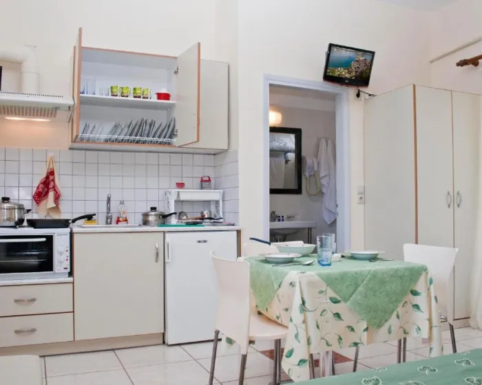 U sobama: opremljena mini-kuhinja (električni šporet sa 2 ploče za kuvanje, aparat za kafu, kuvalo za vodu), klima uredjaj, SAT TV, Wi-Fi internet, sef, tuš, fen za kosu, mini frižider, balkon / terasa.
