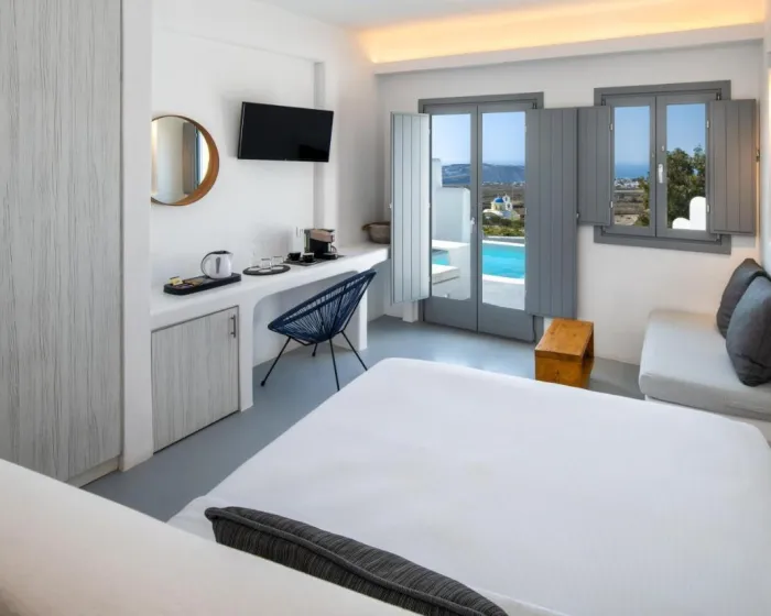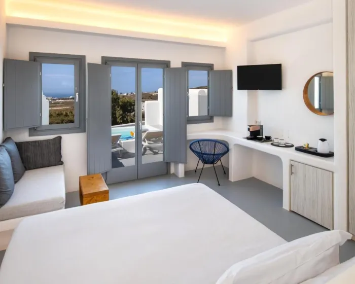 Klima uređaj i centralno grejanje omogućavaju da sobe održavaju udobnu temperaturu. Gosti mogu uživati u pogledu na more sa balkona ili terase. Sobe uključuju krevet veličine queen. Takođe su dostupni sef, minibar i radni sto. Gosti će pronaći i kutak za čaj/kafu među standardnim sadržajima. Sobe su opremljene telefonima, satelitskom televizijom i WiFi-jem (bez dodatne naplate), pružajući mnogo načina za goste da ostanu povezani i zabave se. Papuče su uključene. Kupatila su opremljena tuš kabinom. Fen za kosu, bade mantili i telefon su obezbeđeni. Kao posebna karakteristika, kupatila su takođe opremljena kozmetičkim proizvodima i izborom peškira. Hotel samo za odrasle ima sobe za nepušače.