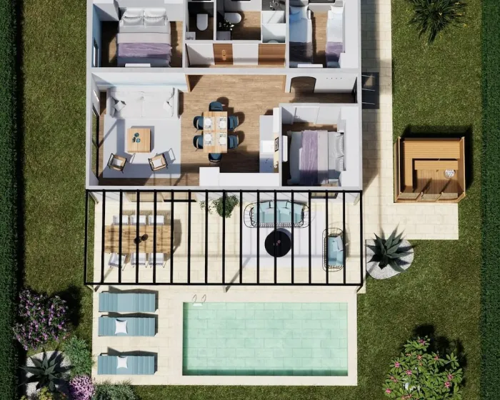 Osećajte se kao kod kuće u jednoj od 15 klimatizovanih soba sa privatnim bazenima i flat-screen televizorima. Kuhinje su opremljene velikim frižiderima/zamrzivačima, šporetima i mikrotalasnim pećnicama. Udobnosti uključuju odvojene dnevne boravke i pegle/dašča za peglanje, a možete zatražiti i krevece/krevetića za novorođenče (uz doplatu).