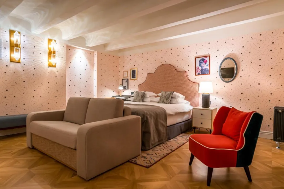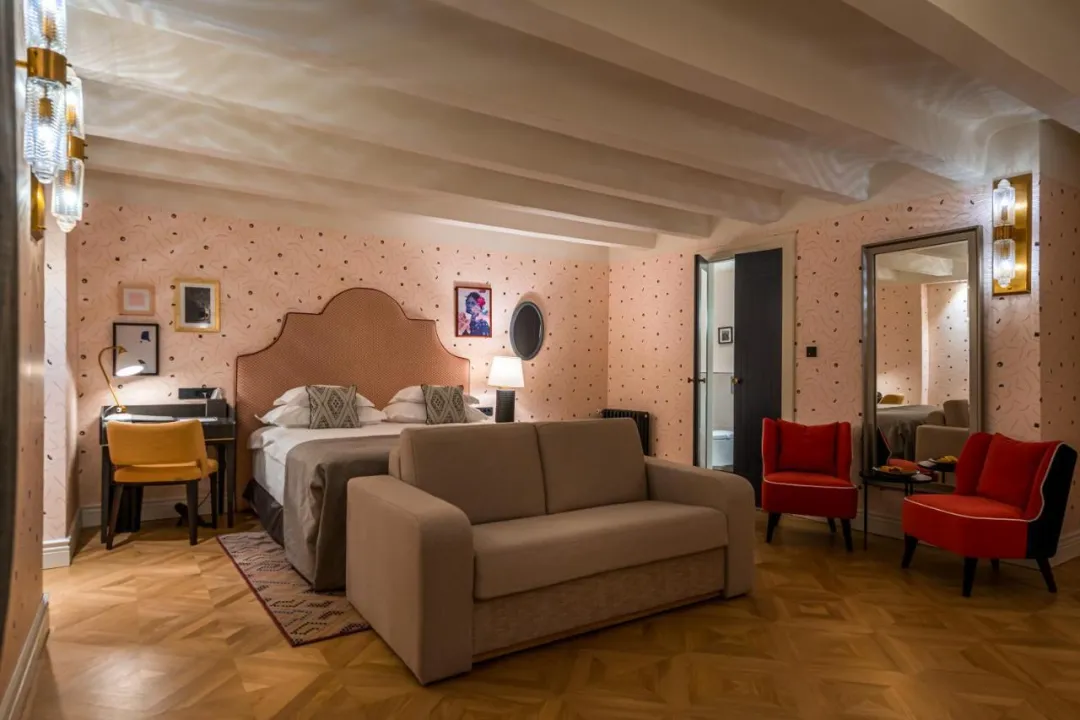 Sobe su opremljene klima uređajem i centralnim grejanjem. Sobe sadrže bračni krevet. Dodatni kreveti mogu biti zatraženi. Takođe su dostupni sef i minibar. Telefon, TV i WiFi su takođe obezbeđeni. Fen za kosu i telefon su obezbeđeni u kupatilima, koja uključuju tuš. Kozmetički proizvodi i izbor peškira pružaju dodatnu udobnost u kupatilima. Hotel ima sobe za nepušače.